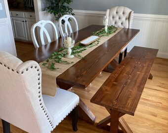 Our farmhouse dining table, the mission dining table, and harvest dining table are among our customer favorites.